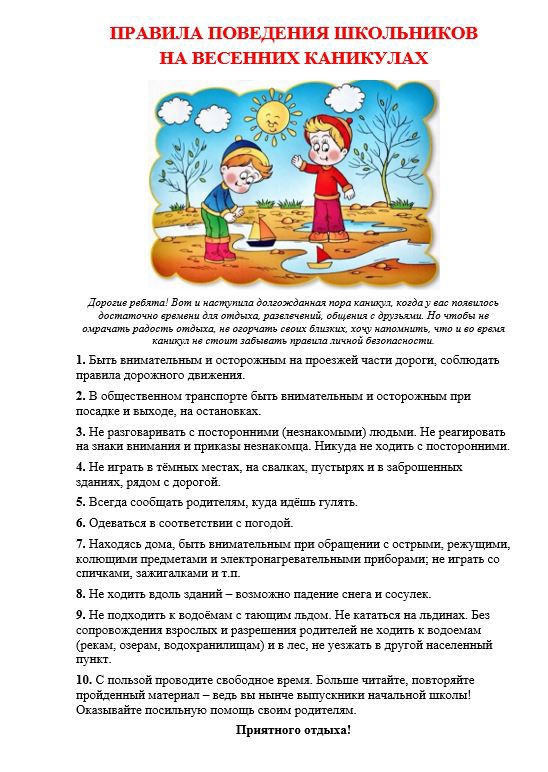 Безопасность в период весенних каникул
