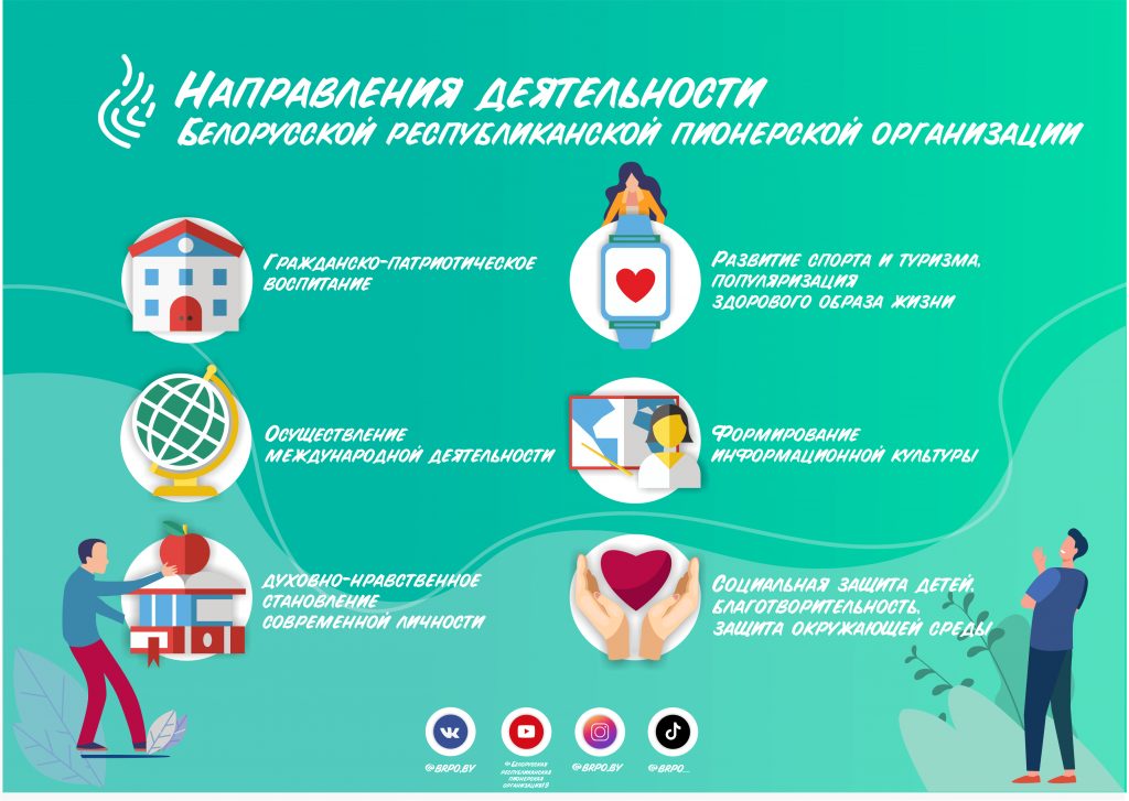 ОО «БРПО» – самостоятельное, добровольное, общественное, многонациональное объединение детей, подростков и взрослых, ориентированное на общечеловеческие ценности, представляющее и защищающее интересы и права своих членов. Свою деятельность ОО «БРПО» осуществляет по следующим направлениям: