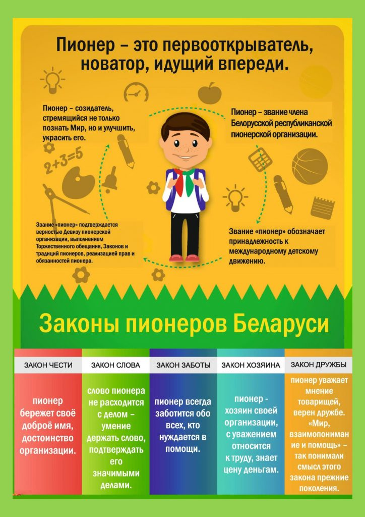 Пионер – звание члена Белорусской республиканской пионерской организации. У пионеров есть законы и традиции https://brpo.by/pionery-2/