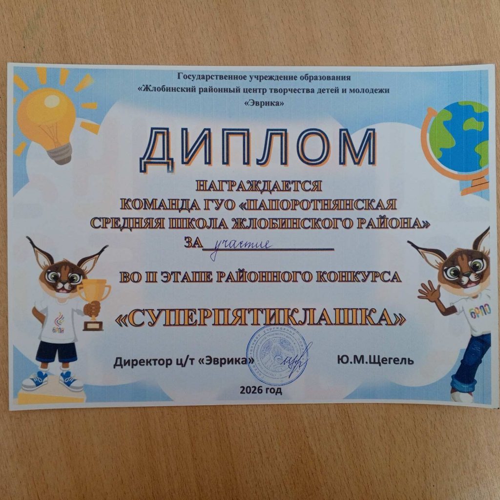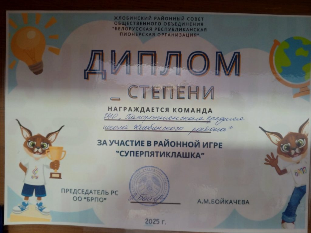 Пионерская дружина имени Антона Губарева Папоротнянской средней школы, выполнила 1 задание. Оформили фотозону, посвященную дню Рождения БРПО. Здесь с 8 по 13 сентября каждый день выполняли задания к празднованию 35- летия БРПО.