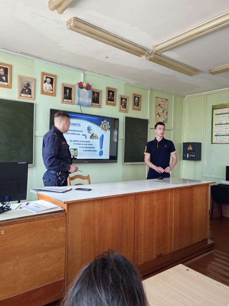 01.04.2026 в Папоротнянской средней школе в рамках программы правового просвещения и повышения безопасности среди молодежи, а также с целью профориентации инспектор ИДН Котиков С.И. и начальник ИВС Юрков Б.А. В ходе встречи были рассмотрены вопросы о кибербезопасности, половой неприкосновенности, наркомании и незаконного оборота наркотиков.